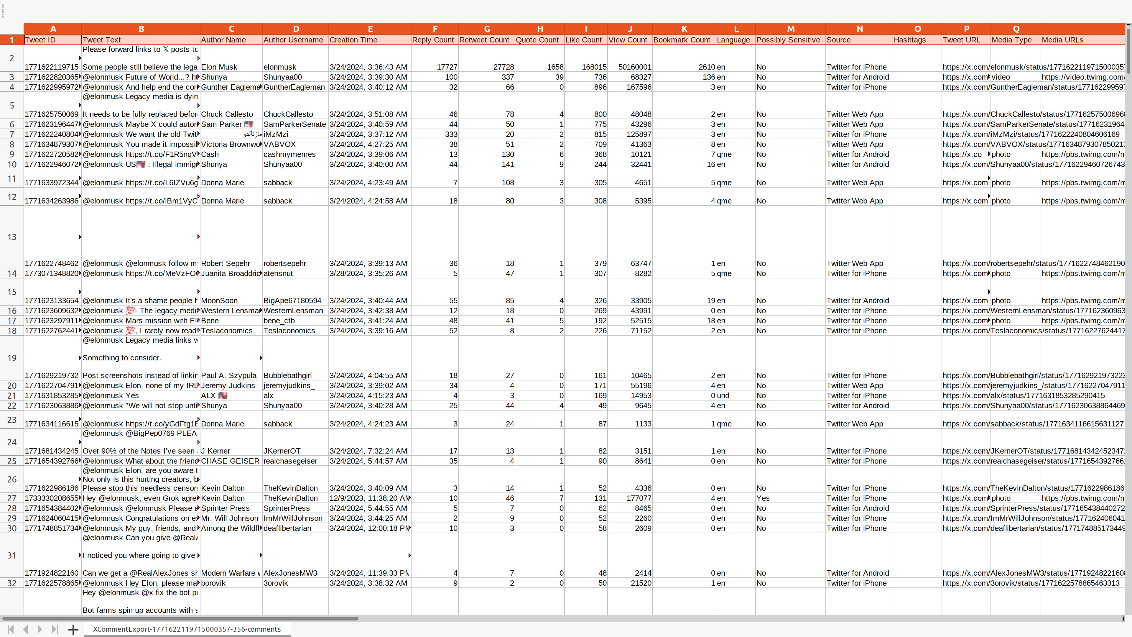 Save time and effort by exporting X (Twitter) comments from any tweet to CSV or Excel with a single click. Whether you want to analyze tweet conversations, study engagement patterns, or research public discourse, XCommentExport makes exporting data easier than ever.